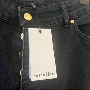 Retrofete Button Fly Distressed Raw Hem Black Denim Jeans Size 31, NWT