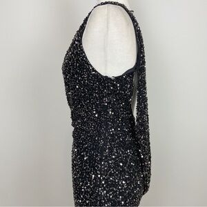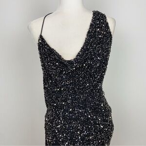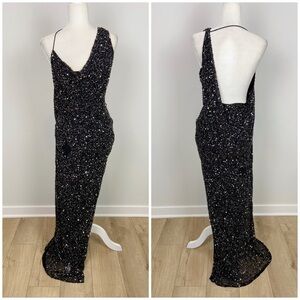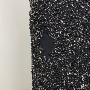 * Mesh fabric overlay with sequin embellishments throughout and side seam slit