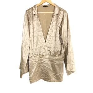 Retrofete Chain Print Dress Satin Long Sleeve Collared Mini Small