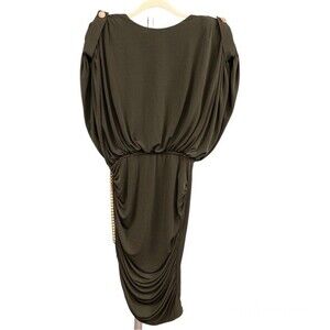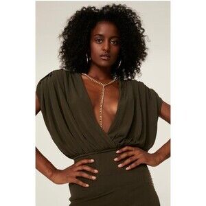Green crepe (92% Polyester, 8% Spandex). Hourglass.