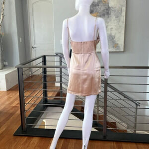 This beautiful NWT Retrofete Cosmo Dress in Dusty Peach features barely-there straps, lined bodice cups, and a shirred, zippered back. There is a small run at the bottom of the right bust area (see last pic), otherwise, this dress is in great condition.