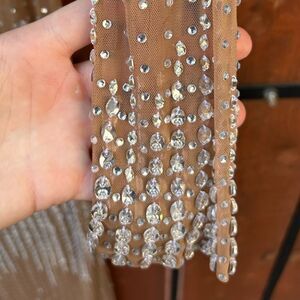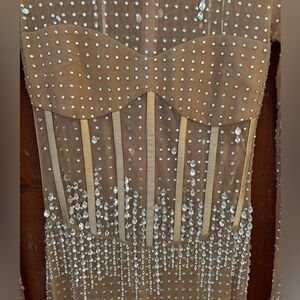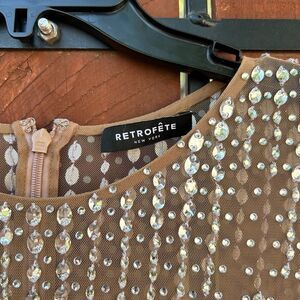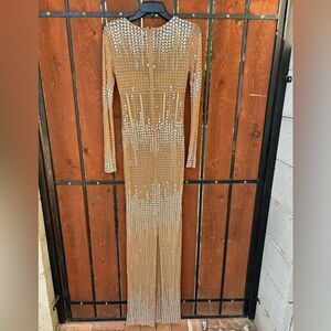 Retrofete Crystal Long sleeve Dress Size Small Nude/Silver