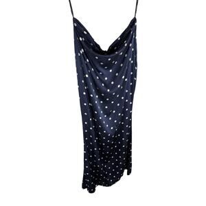 Retrofete Darla Maxi Skirt Silk Blend Polka Dot Statement Navy White Size L