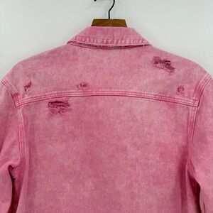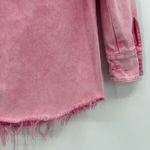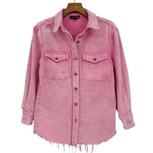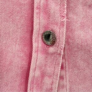 Retrofete Doreen Denim Button Down Shirt with Raw Hem in Vintage Pink Size XS