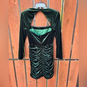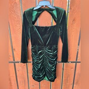 Retrofete Dress Velvet Long Sleeve Ruched Keyhole Back Bodycon Mini size small