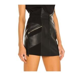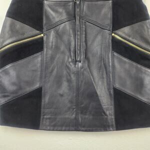 Retrofete Fae Patchwork Skirt Black Lamb Leather Goat Suede Size Medium NWT