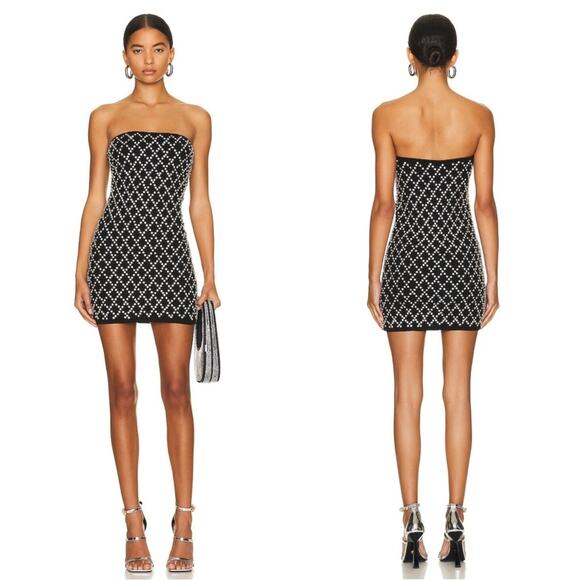 NWT Retrofete Black and Silver Grid Felicity Crystal Embellished Mini Dress Sz M is brand new with tags! Sold out everywhere, this dress was made to hug your curves and steal the show!