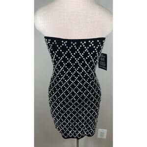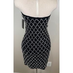 Retrofete Felicity Strapless Grid Crystal Embellished Black Mini Dress Sz M