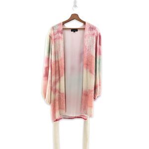 Wrap styling with velvet tie closure and elasticized sleeve openings