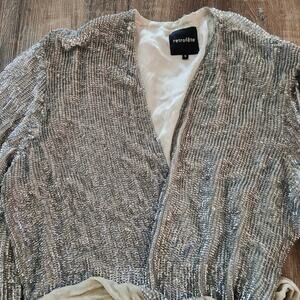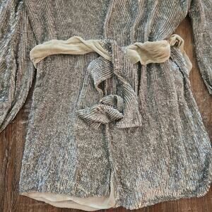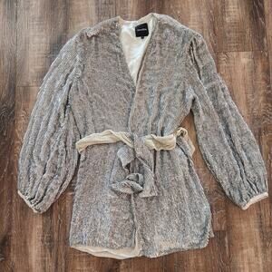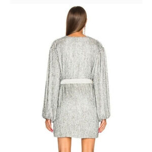Retrofete Gabrielle Robe Sequin Dress in Silver Size Small Belt Long Sleeve