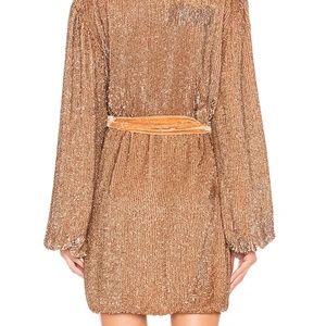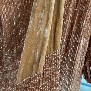AS SEEN ON TAYLOR SWIFT | Retrofete Gabrielle Sequined Robe Dress in Bronze. Allover sequin embellishment, adjustable velvet waist tie, elasticized sleeve openings, fully lined. Mini length. So comfortable to wear, runs true to size. Luxurious quality. Worn once, in perfect condition.