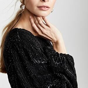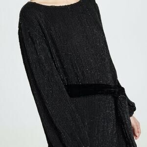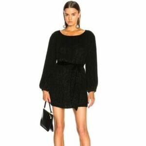 Retrofete Grace Sequin Long Sleeve Dress Black Medium NO BELT embellished NEW