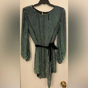 Retrofete Grace Sequin Mini Dress Metallic Green Size XS. Good pre-owned condition despite areas of missing sequins. I believe the color is metallic turquoise.