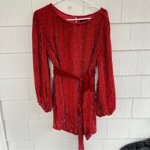 Retrofete Grace Sequined Long Sleeve Mini Dress Red size XS
