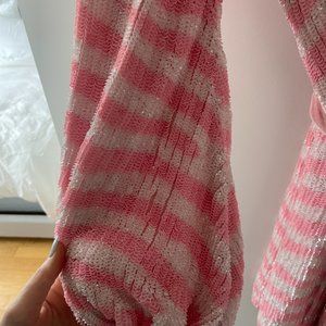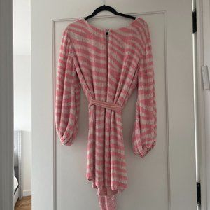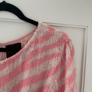 Retrofete Grace Sequins Mini Dress Small Striped Pink & White Self Tie Belt