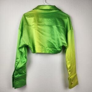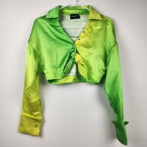 Retrofete Green Crop Top Long Sleeve Size Small Ombre Button Down