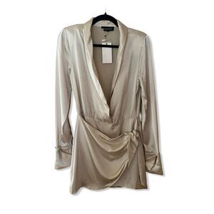 Retrofete Hailey Dress mini side tie champagne satin party Revolve New