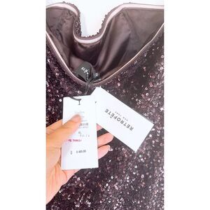 While understated in design, the Heather Dress shines bright in its hand-stitched sequin fabrication. The steadfast strapless silhouette features supportive boning through the bodice to contour the curves of the body and an invisible side zip closure. Shown here in Dark Chocolate.