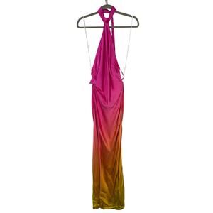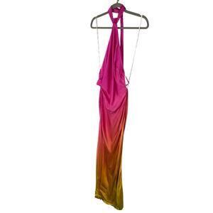 Retrofete Jagger Halter Silk Dress Satin Formal Party Gala Pink Lime Ombre Small