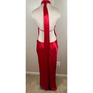 Retrofete Jagger High Slit Halterneck Tie Red Maxi Dress Size Small