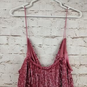 Retrofete Jill Sequin Mini Dress in Pastel Pink Size XL NWT Spaghetti Straps