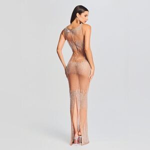 Retrofete Jovie Crystal Dress Size Small NWT Nude/Silver