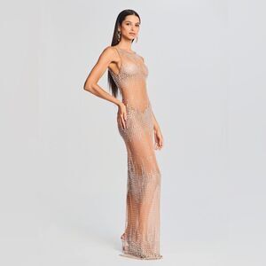 Retrofete Jovie Crystal Dress Size Small NWT Nude/Silver