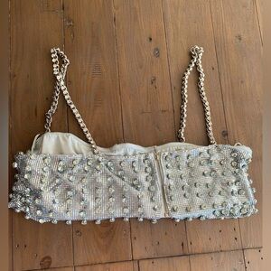 Retrofete Kauren cropped embellished chainmail camisole in silver NWT