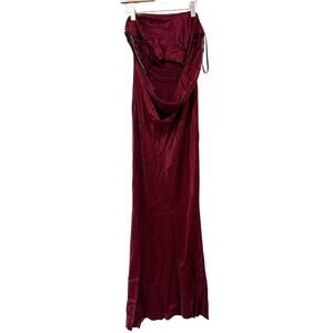 Retrofete Keaton Silk Maxi Dress in Cabernet Red . Women's Size L / Large. Features lightweight stretchy charmeuse fabric, strapless, draped back with strappy design, hidden side zipper closure, unlined, maxi length. 95% silk, 5% spandex. Great used condition, no notable flaws. Retail $595.