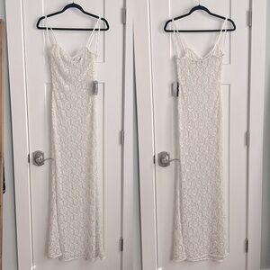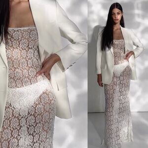 Retrofete Landy Sheer Lace Faux Pearl Adorned Maxi Dress White NEW with tag