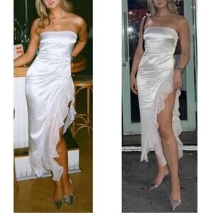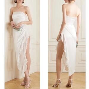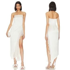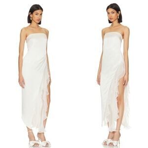 Retrofete Lorelai Strapless Ruched Draped Ruffle Asymmetric Maxi Dress Sz Small is brand new and has never been worn, only tried on for sample piece fitting!