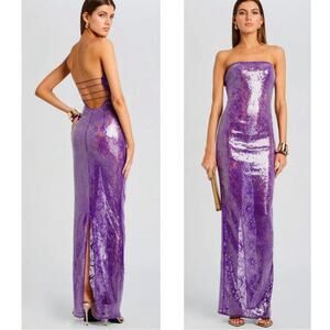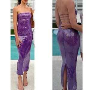 Retrofete Lucia Sequin Strapless Bodycon Lace Sheer Purple Maxi Dress Size XXS is brand new with tags! Sold out everywhere in this size!