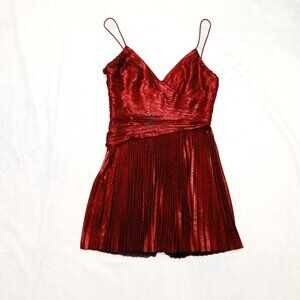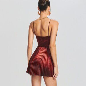 Retrofete Lumi Dress in Crimson Red Metallic Shimmer Pleated Mini XS