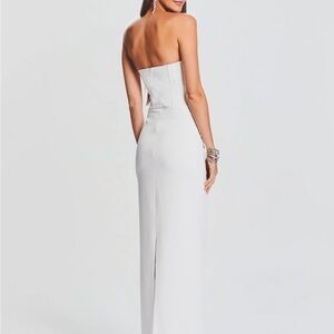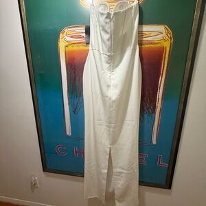 This elegant white strapless dress is perfect for any formal occasion. Its sleek design offers a timeless look. Brand new with tags!