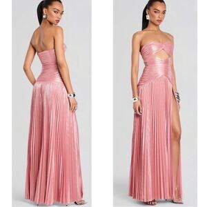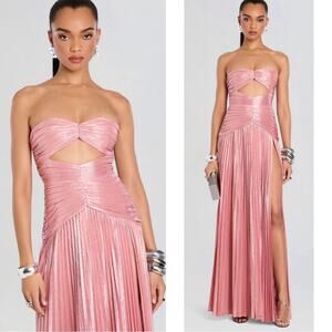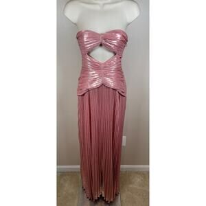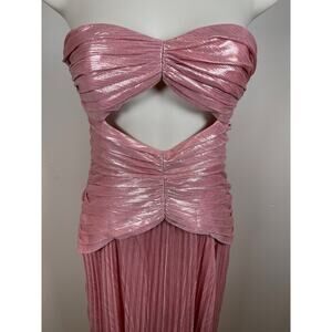 Retrofete Mallory Strapless Cutout Ruched Pleated Metallic Pink Maxi Dress Sz XS is brand new with tags!