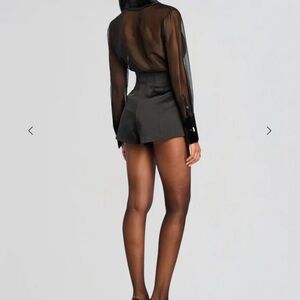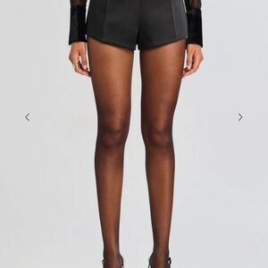 Size XS - Worn once, the Marie Short refreshes your evening wardrobe with a high-waisted fit and polished finish. Designed for nights out, these mini shorts offer a stylish alternative to everyday basics. They pair effortlessly with a silk blouse and can be dressed up or down for evening occasions. Shown here in Black.