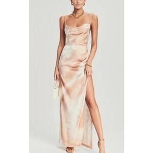 Retrofete Marlene Tan White Tie Dye Silk Maxi Dress Womens NWT Size XL Cowl Slit