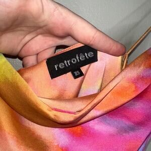 Retrofete Marlene Tie-Dyed Stretch Silk Satin Maxi Dress Sunset Orange Size XS