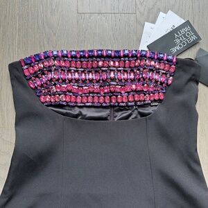 Retrofete Martini Black Strapless Mini Dress Rhinestone Crystal - Small
