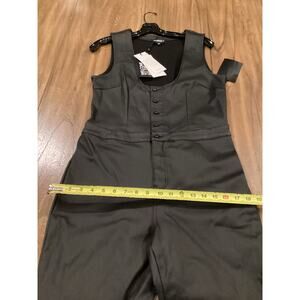 Retrofete Mckinnon Black Coated Denim Jumpsuit Plunge Flare Leg XL NWT