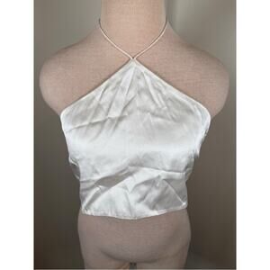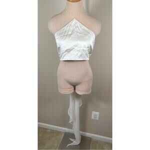 Retrofete Mesta Silk White Halterneck Crop Top with Train Size XXL is brand new with tags!
