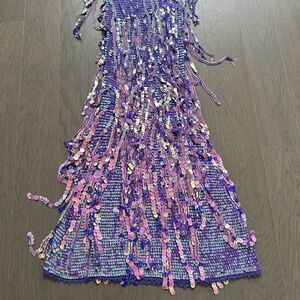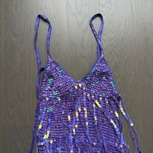 Retrofete Mevia Sequin Fringe Crochet Maxi Dress XS / SMALL - PURPLE- EUC