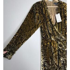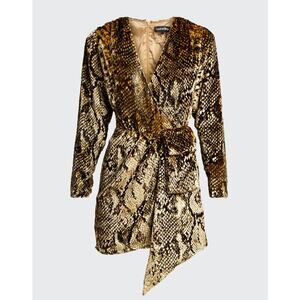 Retrofete NWT Eleanor Velvet Mini Dress in Gold Snake Size XS Black Animal Print