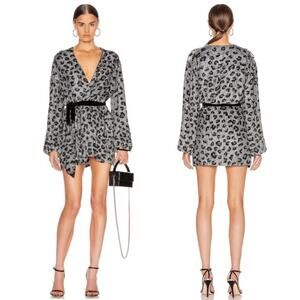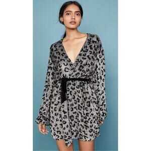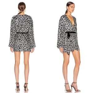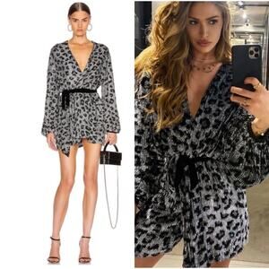Retrofete NWT Gabrielle Silver Leopard Print Sequined Mini Dress XS