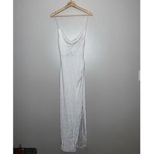 Retrofete NWT Katya Sequin Midi Dress Cowl Neck Moonglow White Slit Size XS