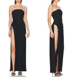 Retrofete Nadia Crystal Snake Embellished Strapless High Slit Maxi Dress Sz S