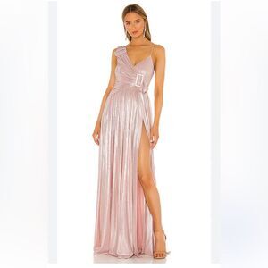 Retrofete Natalie Dress in Baby Pink Metallic maxi gown flowy FWRD Revolve M
