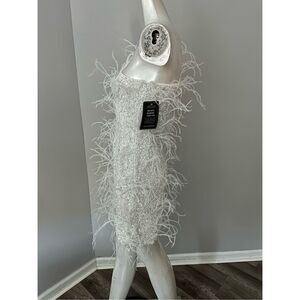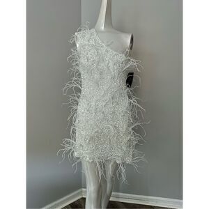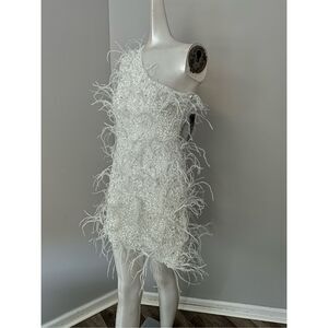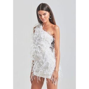 NWT Retrofete One Shoulder Sina Ostrich Feather Bodycon Mini Dress White Small $895