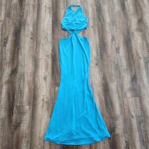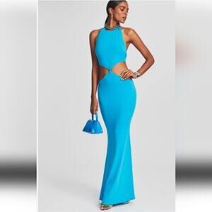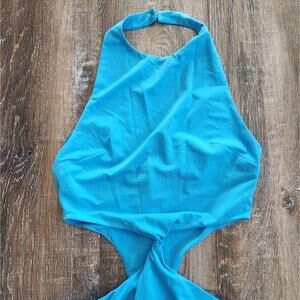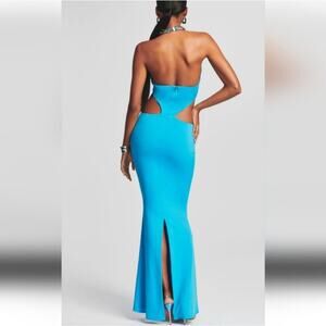 Retrofete Raven Dress in Peacock Blue Size XS Halter Open Back NWT