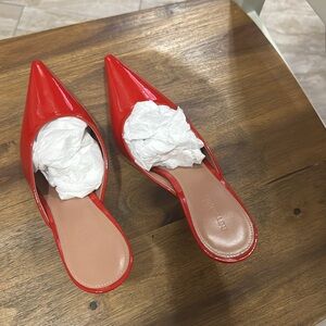 Step into sophistication with Retrofete's red heels, showcasing a sleek pointed toe and a chic kitten heel. Crafted from a smooth material, these shoes embody a minimalist design ideal for both professional and casual occasions. The vibrant red color adds a touch of elegance to any outfit.